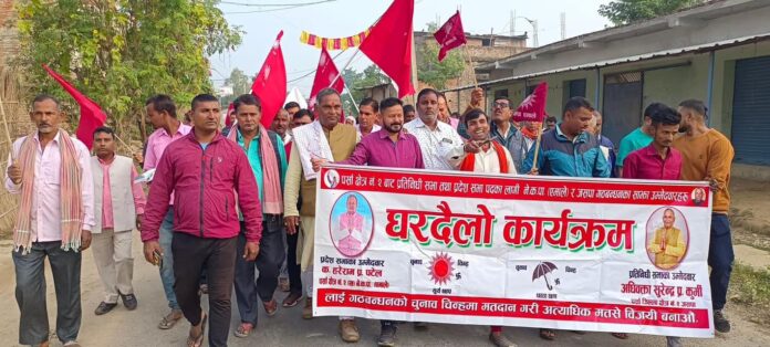 एमाले र जसपाका नेताहरु सहित उम्मेदवार अधिवक्ता कुर्मीले स्थानीयको समेत सहभागितामा बर्वा टोलमा घरदैलो कार्यक्रम गर्नु भएको हो ।