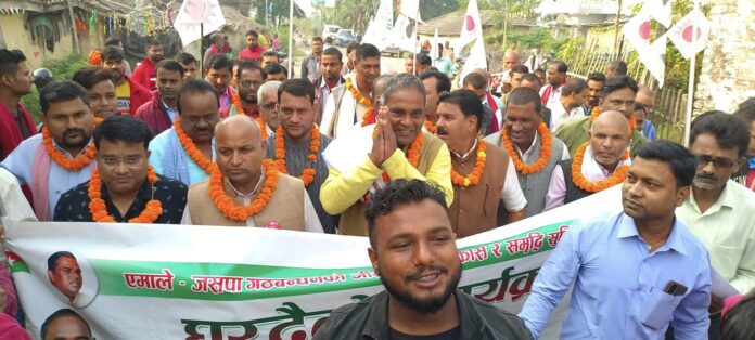 एमाले–जसपाका पर्सा क्षेत्र नं. २ को प्रतिनिधिसभा सदस्य उम्मेदवार अधिवक्ता सुरेन्द्र कुर्मीलाई मतदाताहरु भव्य स्वागत गरेका छन ।