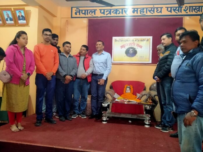 नेपाल पत्रकार महासंघ पर्साका जिल्ला कार्य समिति सदस्य समेत रहेका ३८ बर्षिय पत्रकार सर्राफको मंसिर १५ गते निधन भएको थियो ।