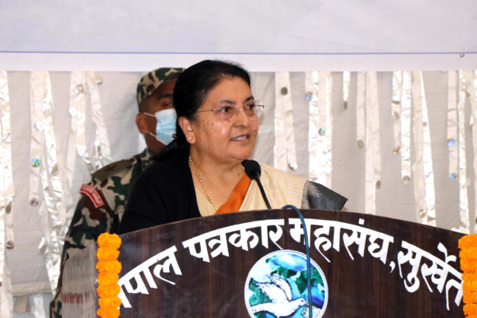 कर्णाली प्रदेशको राजधानी सुर्खेतको बीरेन्द्रनगरमा आज आयोजित नेपाल पत्रकार महासंघको साधारणसभा उद्घाटनमा बोल्दै राष्ट्रपति भण्डारीले मुलुकको व्यवस्था परिवर्तनका विभिन्न आन्दोलनमा पत्रकारिता जगतले महत्वपूर्ण योगदान पु¥याएको बताउनुभयो ।
