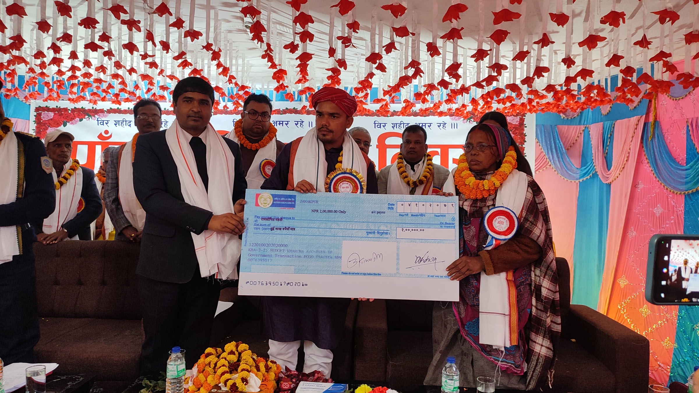 यसै क्रममा आज मधेसी सहिद प्रतिष्ठानले जनकपुरधाममा विशेष कार्यक्रमको आयोजना ग¥यो । कार्यक्रममा मधेस प्रदेश सरकारका बिनाविभागीयमन्त्री सञ्जयकुमार यादवले मधेस आन्दोलनका सहिद परिवार र घाइतेको व्यवस्थापनका लागि सरकारले विशेष योजनासहित काम गर्ने बताउनुभयो । उहाँले आन्दोलनका क्रममा सहादत प्राप्त व्यक्ति तथा घाइतेको छुट तथ्याङ्क सङ्कलन गरी सबैको व्यवस्थापन गरिने प्रतिबद्धता व्यक्त गर्नुभयो ।