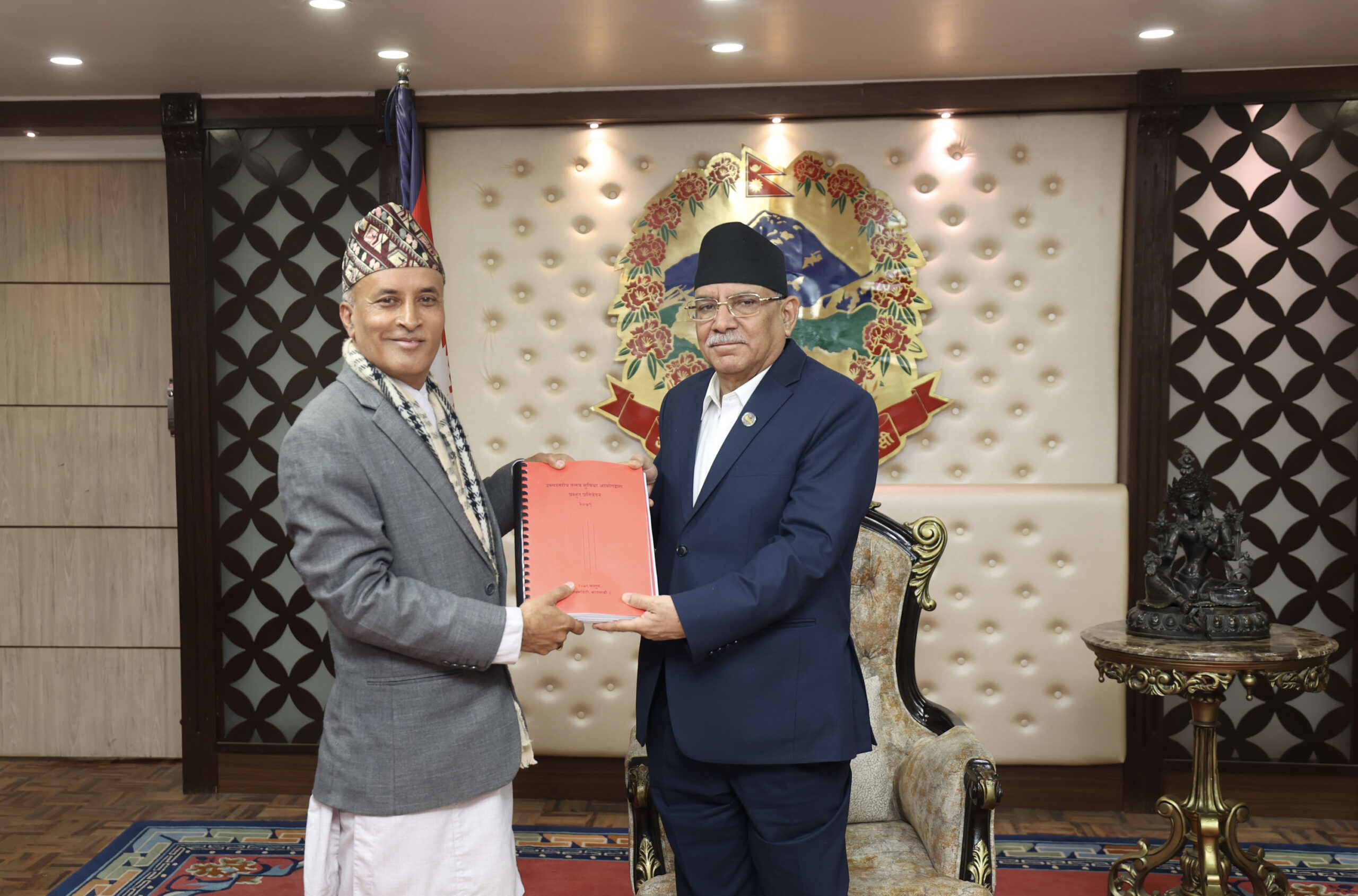 प्रतिवेदन हस्तान्तरण गर्दै आयोगका संयोजक लीलामणि पौडेलले प्रतिवेदनमा नेपालको अर्थतन्त्रको संक्षिप्त विश्लेषण, दक्षिण एसियाली मुलुकमा कर्मचारीको सेवा सुविधाको अवस्था, सेवा सुविधासम्बन्धी नयाँ प्रस्ताव रहेको जानकारी दिनुभयो ।