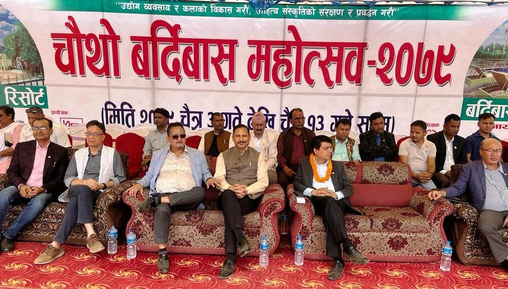 “स्थानीय कला, उद्योग, ब्यवसायको बिकास गरौ” भन्ने नाराका साथ आयोजित चौथो बर्दिवास महोत्सवको उद्घाटन कार्यक्रममा नेपाल उद्योग वाणिज्य महासंघका बरिष्ठ उपाध्यक्ष चन्द्र ढकाल, नेपाल उद्योग वाणिज्य महासंघ मधेश प्रदेशका निर्वमान अध्यक्ष गणेश लाठ, मधेश प्रदेश उद्योग वाणिज्य संघका अध्यक्ष तथा प्रतिनिधी लगायतको उपस्थिती रहेको थियो ।