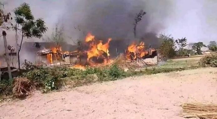 स्थानीय जिउत मुखियाको घरबाट सल्कीएको आगोले बस्तीका २१ घर जलेर नष्ट भएको स्थानीयले जनाएका छन ।