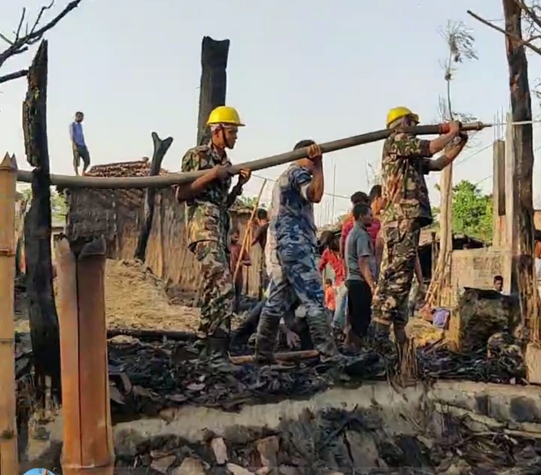 रौतहट जिल्ला माधवनारायण नगरपालिकामा भएको भिषण आगलागीबाट २१ भन्दा बढी घर जलेर नष्ट ।