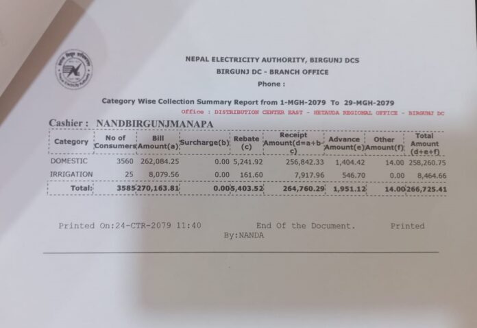 प्राधिकरण वीरगंज वितरण केन्द्र र सिमरा वितरण केन्द्रबाट ग्राहस्थ (घरेलु) मिटरमा ५ र १५ एम्पीआरको एमसीबी प्रयोग गरी अधिकतम ३० युनिट खपत गर्ने ग्राहकको भुक्तानी महानगरले तिरिदिएको हो ।