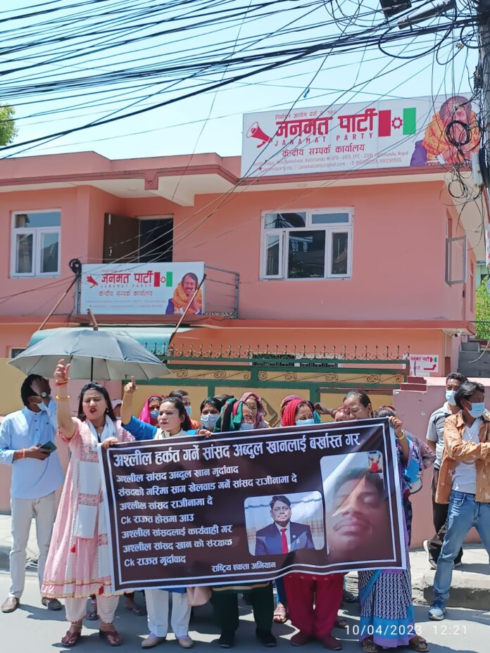 खानलाई कारवाही गर्नका लागि काठमाडौं स्थित जनमत पार्टीको केन्द्रीय कार्यालयको अगाडि अभियानले प्रदर्शन समेत गरेको छ ।