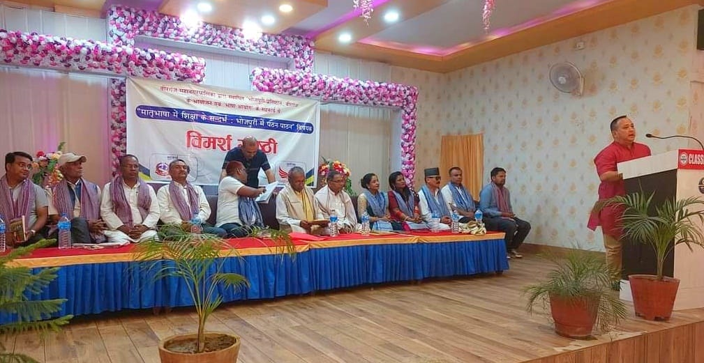 भोजपुरी प्रतिष्ठान बीरगंजद्वारा भाषा आयोगको सहकार्यमा बिहिवार बीरगंज स्थित क्लासिक होटेलमा आयोजित “मातृभाषा में शिक्षा के सन्दर्भ–भोजपुरी में पठन पाठन” विषयक विमर्श गोष्ठी कार्यक्रमलाई सम्बोधन गर्दै मेयर सिंहले यस्तो बताउनु भएको हो ।