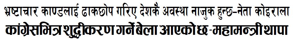 कांग्रेस महामन्त्री गगनकुमार थापाले पार्टी नेतालाई पनि कुनै अभियोग लाग्दा निलम्बन गरिनुपर्ने मत केन्द्रीय समितिमा राखेको बताउनुभयो । “अनुहारमा दाग लागेका बेला ऐना पुछेर समस्या समाधान हुँदैन, पार्टीभित्र शुद्धीकरणका लागि काम गर्ने बेला आएको छ, यसमा प्रजातान्त्रिक विचार समाजको पनि साथ र सहयोग आवश्यक पर्छ, समाजले कांग्रेसको शुद्धीकराणका लागि आलोचनात्मक दबाब दिनुपर्छ”– उहाँले भन्नुभयो । निर्वाचनअघि सरकारमा जानकै लागि गठबन्धन गर्नु गल्ती भएको स्वीकार गर्दै महामन्त्री थापाले त्यसलाई रोक्न नसक्नुसमेत कमजोरी भएको बताउनुभयो । निर्वाचन परिणाम आइसकेपछि सत्ता समीकरण बनाउनु नै स्वाभाविक हुने उहाँको भनाइ थियो ।