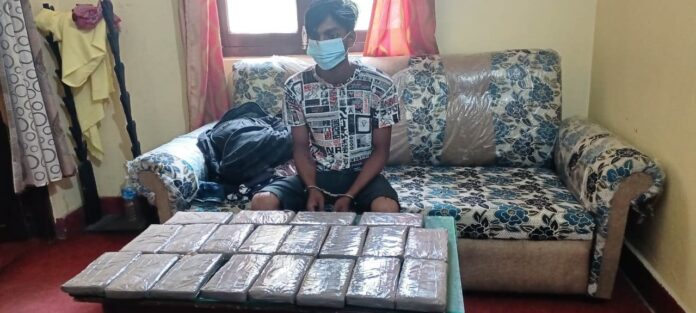 प्रहरी चौकी आशवारीबाट खटिएको नियमित चेकिङ टोलीले शंकास्पदरूपमा आएका द्यच्द्दद्दब्त् डद्धढड नम्बरको मो.सा.रोकेर चेक जांच गर्दा मो.सा.मा सवार २१ वर्षीय अनिल पासवानले ढाडमा पछाडी भिरेको झोला भित्र लुकाई छिपाई राखिएको अवस्थामा लागु औषध चरेश २० प्याकेट फेला परेको जिप्रकाले जनाएको छ ।