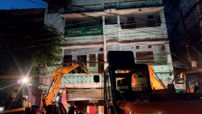 वीरगंज महानगर अन्तरगतको मुख्य नाला अतिक्रमण गरि संचालनमा रहेको क्लासिक होटल र कर्पोरेट बैंकको भवन हटाउन डोजर लगाइएको छ ।
