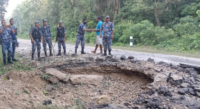 बाँकेको राप्ती सोनारी गाउँपालिका–८ नयाँ गाउँ नजिकै पूर्व(पश्चिम राजमार्गमा आज बिहान बम विष्फोट हुँदा सडकमा क्षति पुगेको छ ।