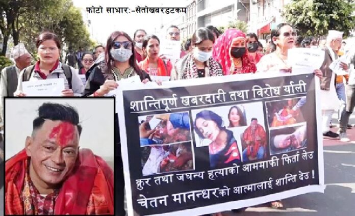 महिला अधिकारकर्मीहरूले रिगललाई पुनः कारगार पठाउनुपर्ने माग गर्दै आज माइतीघर मण्डलमा प्रदर्शन गरेका हुन् । उनलाई कैद मिनाह दिइएको भन्दै त्यसको विरोधमा मृतककी पत्नी भारती मानन्धर माइतीघरमा अनसनरत हुनुहुन्छ ।