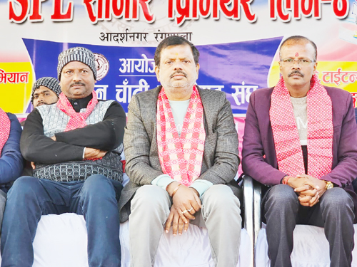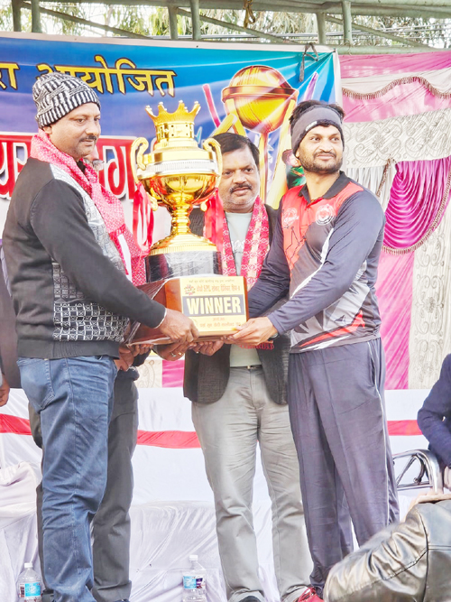 आदर्शनगर रंगशाला मै आयोजित प्रतियोगिताको समापन समारोहमा जिल्ला समन्वय समिति पर्साका सभापति अजय सर्राफले उपाधि विजेता र उपविजेता टिमलाई कप र नगद पुरस्कार प्रदान गर्नु भयो ।