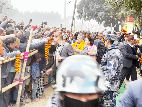पुर्व राजा ज्ञानेन्द्र विर विक्रम शाहलाई रौतहट जिल्ला स्थित शिवनगरमा सम्मान सहित स्वागत गरिएको छ ।