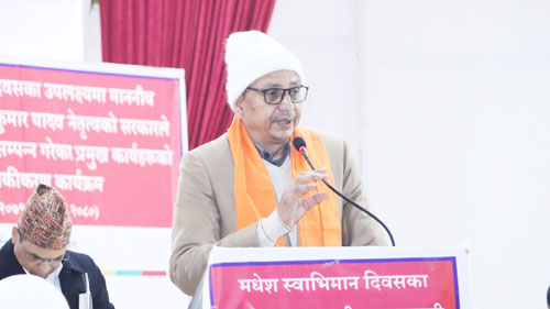 मधेस प्रदेश नामांकन र प्रदेश राजधानी जनकपुर तोकिएको दिनलाई स्वाभिमान दिवसका रुपमा मनाउन आज जनकपुरधाममा आयोजित कार्यक्रममा मुख्यमन्त्री सरोजकुमार यादवले सरकार गठनको एक वर्षमा भएका उपलब्धि सार्वजनिक गर्नुभएको हो ।