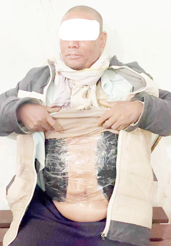 प्रहरी टोलीले वीरगंज महानगरपालिका वडा नं.१९ तिलावे पुल स्थित सडकखण्डमा सवारी साधन तथा पैदल याक्रीहरूलाई जाँच गर्ने त्रममा साईकलमा सवार पर्सा जिल्ला बहुदरमाई नगरपालिका वडा नं.९ बिश्रामपुर बस्ने वर्ष ५५ को मोखु राउत कुर्मीको शरीर खानतलासी गर्दा निजले आफ्नै शरीरमा लुकाइ छिपाइ राखिएको लागु औषध गाँजा १ कलो १ सय ग्राम फेला परेको जिल्ला प्रहरी कार्यालय पर्साले जनाएको छ ।