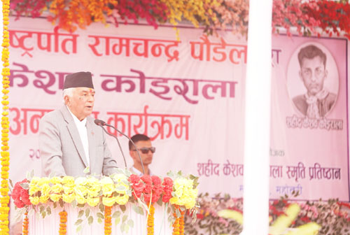 आज मटिहानीमा सहिद केशव कोइरालाको प्रतिमाको अनावरण गरेपछि सहीद केशव कोइराला स्मृति प्रतिष्ठान र मटिहानी नगरपालिकाद्वारा संयुक्तरूपमा आयोजित कार्यक्रममा राष्ट्रपति पौडेलले निमुखा र विपन्न वर्गको उत्थानसहित लोकतन्त्र, गणतन्त्र र समानतासहितको राज्य व्यवस्था कायम गर्ने सहिदको त्यो सपनालाई रक्षा गर्नु अहिलेको आवश्यकता हो भन्नुभयो । “हामीले जनताका अधिकार स्थापित गरेको संविधान पाएका छौँ । यसअनुसार दलित, उत्पीडित, जनजाति, महिला, आदिवासीलगायत तल्लो तहका जनताको उत्थान गर्नुछ । यही नै हो लोकतन्त्र, यही नै हो गणतन्त्र, यही नै हो समानता,” उहाँले भन्नुभयो ।