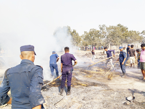 आगलागीबाट पाँच खसीबाख्रा र दुई सुँगुर समेत मरेका प्रहरीले जनाएको छ । बस्तीभरि फैलिएको आगो निभाउन १० वटा दमकल प्रयोग गरिएका थिए । नेपाल प्रहरी, सशस्त्र प्रहरी बल, नेपाली सेना र भारतीय सुरक्षाकर्मीसहित स्थानीयको सहयोगमा आगो निभाइएको हो ।