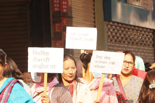 अन्तराष्ट्रिय श्रमिक दिवसको अवसरमा श्रमिक महिला रक्षा सघंले र्याली निकालेको छ ।