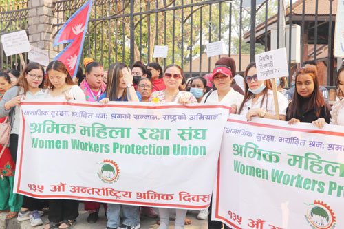 १३५औं अन्तराष्ट्रिय श्रमिक दिवसको अवसरमा राजधानी काठमाण्डौंमा बुधवार श्रमिक महिला रक्षा सघंले र्याली निकालेको हो ।