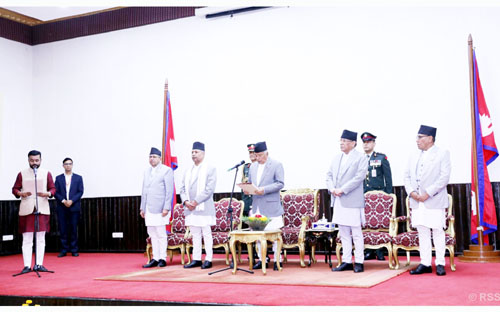 आजै राष्ट्रपति पौडेलेको समुपस्थितिमा प्रधानमन्क्रीसमक्ष नवनियुत्त स्वास्थ्य राज्यमन्त्री हसिना खानले पनि नेपालको संविधानको धारा, ८० बमोजिम राज्यमन्त्री पदको पद तथा गोपनीयताको शपथ लिनुभएको छ ।