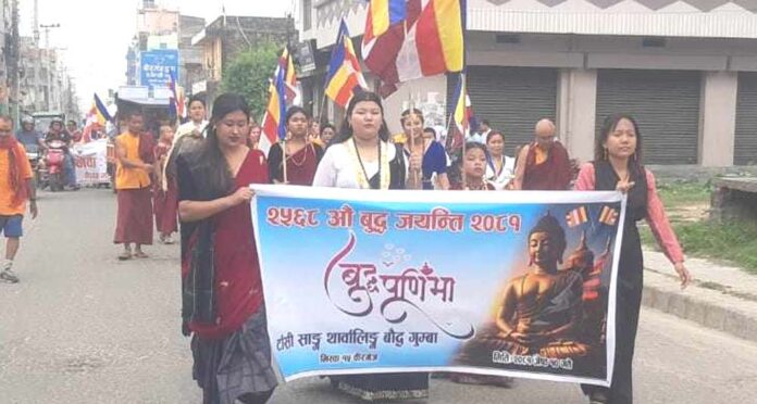 भिस्वा बौद्ध समिति र टाँसी थर्वालिङ्ग गुम्बाको आयोजनामा वीरगन्जको माईस्थानदेखि वडा नम्बर १५ स्थित भिस्वा डाडासम्म र्याली निकालिएको हो ।