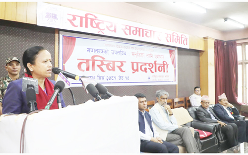 राससका कार्यकारी अध्यक्ष धर्मेन्द्र झाले गणतन्त्र आएपछि विकास निर्माणसहित पूर्वाधारका क्षेत्रमा मुलुकमा भएको प्रगति र परिवर्तनबारे जानकारी दिने उद्देश्यले तस्बिर प्रदर्शनी आयोजना गरिएको बताउनुभयो । गणतन्त्र दिवसका उपलक्ष्यमा गत वर्षदेखि सुरु गरिएको तस्बिर प्रदर्शनीलाई आउँदा वर्षहरुमा पनि निरन्तरता दिइने उल्लेख गर्दै प्रदर्शनीमा दार्चुलाको मार्मादेखि पाँचथरको धार्पुसम्मका ९५ तस्बिर समेटिएका अध्यक्ष झाले जानकारी दिनुभयो ।