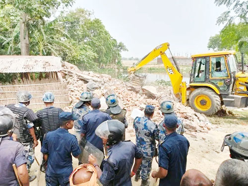 पर्सा जिल्ला कालिकामाई गाउपालिका वडा नं. २ गदियानी स्थित सञ्चालनमा रहेको कृषि तथा पशु उपशाखाको भवन प्रहरीले डोजर लगाएर भत्काउन खोज्दा स्थानीयले अवरोध गरे पछि झडप भएको हो ।