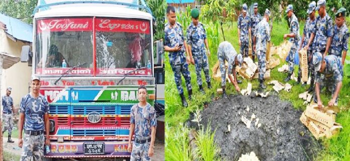 सशस्त्रको टोलीले शुत्रवार वीरगंज महानगरपालिका वडा नं. १० आदर्शनगर चोकबाट ना ४ ख ३७५९ नं.को ट्रक (कन्टेनर) लाई रोकेर चेक जाँच गर्दा बिलबिजक (ख्ऋत्क्) बिनाका भन्सार दाखिला मुल्य रु.५ लाख ८६ हजार ५ सय मुल्य बराबरको प्याज ४८ किलो तौल भएको ५० बोरा, प्रति बोरा ५० किलो तौल भएको २२ बोरा चिनि र साईकल ५३ गोटा भेटिए पछि उक्त सामान सहित ट्रकलाई नियन्त्रणमा लिई आवश्यक कारवाहीको लागि विरगंज भन्सार कार्यालय पर्सामा बुझाएको सशस्त्र प्रहरी बल नं. १३ गण हे.क्वा. पर्साले जनाएको छ ।