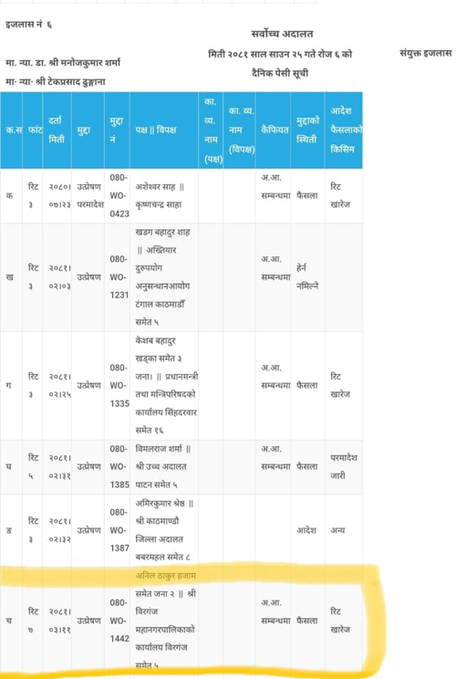 सरुवा विरुद्ध सर्वोच्चमा दायर रिट खारेज