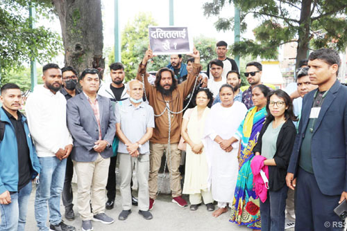 प्रदर्शनमा सहभागीले फलामे साङ्लो (जन्जिर) मा बाँधिएर दलितलाई मन्क्री खै ? दलितलाई कानुन खै ? दलितलाई नियुत्ति खै ? जस्ता प्रश्न लेखिएका प्लेकार्डसहित प्रदर्शन गरेका थिए । अभियानका संयोजक खगेन्द्र सुनारले राज्यका हरेक संरचनामा दलित समुदायको सम्मानजनक सहभागिता हुनुपर्ने मागसहित प्रदर्शन गरिएको बताउनुभयो ।