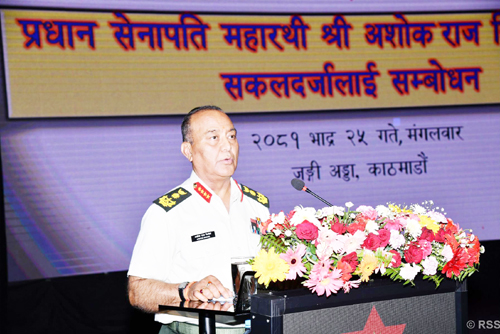 प्रधान सेनापति अशोकराज सिग्देलले मुलुकको स्वतन्त्रता, सार्वभौमसत्ता, भौगोलिक अखण्डता, स्वाधिनता र राष्ट्रिय एकताको रक्षा गर्नु नेपाली सेनाको प्रमुख कार्य रहेको बताउनुभएको छ ।