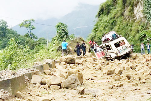 ताप्लेजुङमा पिकअपभ्यानमा माथिबाट खसेको पहिरोसहितको ढुंगा लाग्दा एक महिला मृत्यु भएको छ ।