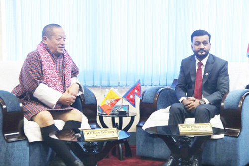 नेपालका खानेपानीमन्त्री प्रदीप यादवसाग भुटानका ऊर्जा तथा प्राकृतिक स्रोत मन्त्री ल्योन्पो जेम छिरिङले आज शिष्टाचार भेट गर्नुभएको छ ।