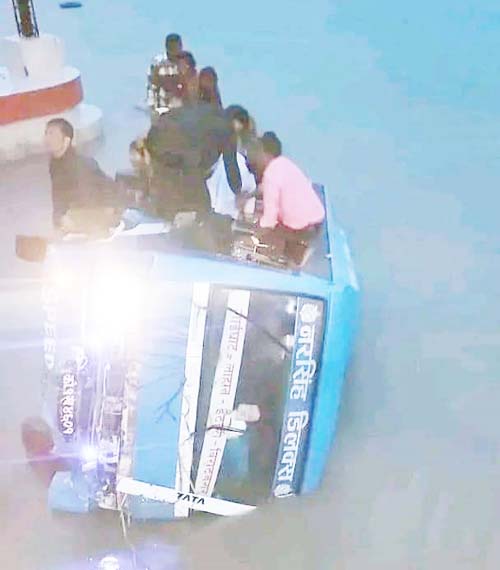 कोसी ब्यारेजको ३४–३६ नम्बर ढोकाको बीचबाट सप्तकोसी नदीमा बस खसेको छ ।