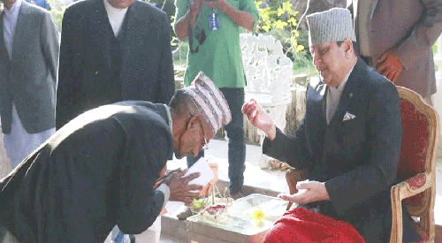 पुर्व राजा र रानीबाट सर्वसाधारनलाई टिका लगाइने