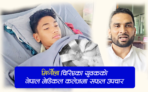 मिर्गौला चिरिएका युवकको नेपाल मेडिकल कलजले बचायो ज्यान