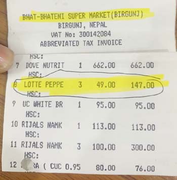 तर पनि भाटभटेनी सुपर मार्केटको नेपाली उत्पादनलाई आफ्नो पसलमा प्रतिबन्ध नै गरेका छन । भाटभटेनी सुपर मार्केटको शोकेशमा देखिने गरेको विदेशी उत्पादित विभिन्न ब्राण्डका चुइगमको प्रति १३ ग्रामको मुल्य रु. ४८ र ४९ मा विक्रि वितरण गर्न गरेका छन ।