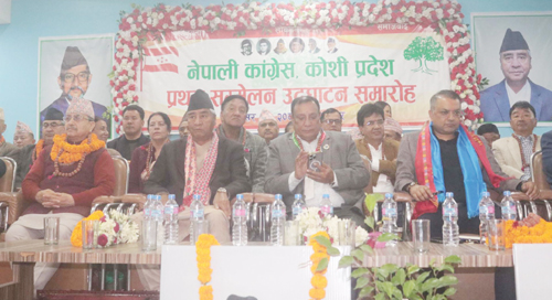 कांग्रेस कोशी प्रदेशका सभापति उद्धव थापाको सभापतित्वमा भएको सम्मेलनमा कांग्रेसका नेताहरू विजयकुमार गच्छदार, डा शशांक कोइराला, डा प्रकाशशरण महत, राजीव कोइराला, अमृत अर्याल, सरिता प्रसाईं, डिला संग्रौला, गोमा भट्टराईलगायत नेताहरूले सम्मेलन सफलताको सुभकामना व्यक्त गर्नुभएको थियो ।