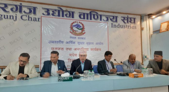उच्चस्तरीय आर्थिक सुधार सुझाव आयोगले वीरगंजका उद्योगी व्यवसायीसँग छलफल गरेको छ ।