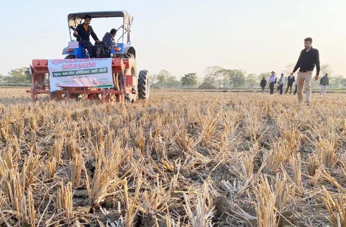 यस प्रविधिबाट धान काटेको खेतमा खनजोत नगरी उपकरणको प्रयोगबाट एकै पटक मकैको बीउ र मल हाल्न सकिन्छ । मकैको एउटा लाइनबाट अर्को लाइनको दूरी ४५ सेन्टिमिटर र बोटको दूरी १५–२० सेन्टिमिटर हुन्छ । हाल गरिएको नमूना खेतीमा डिएपी मल र बीउ एकै पटक राखिएको छ । जिल्लामा गत वर्ष ४४ हजार हेक्टरमा मकैखेती गरिएको थियो भने उत्पादकत्व सात टन प्रतिहेक्टर रहेको जनाइएको छ । (रासस)