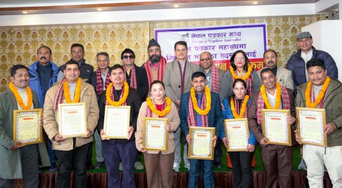 निर्वाचित पदाधिकारी तथा सदस्यहरुलाई नेपाल पत्रकार मञ्चले बधाई तथा सम्मान कार्यक्रम गरेको छ ।
