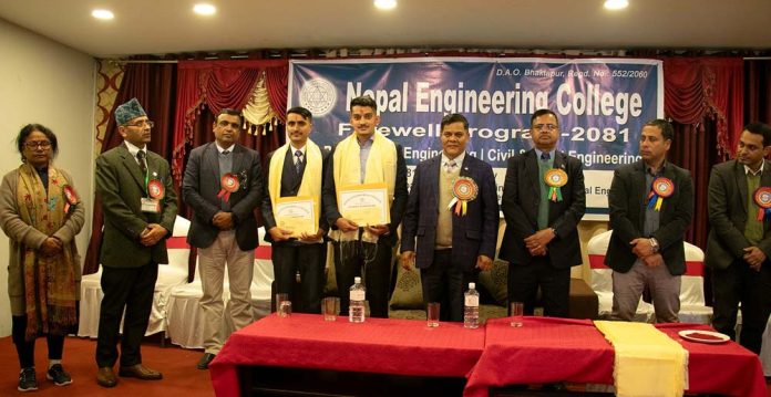 विदाई कार्यक्रममा नव इन्जिनियर विद्यार्थीहरुले ४ वर्षे स्नातक तहको अध्ययनका क्रममा विताएका पलहरुको स्मरण गर्दै प्राध्यापकहरु र कलेज परिवारलाई धन्यवाद दिएका थिए । कार्यक्रममा विद्यार्थीहरुलाई विभिन्न अवार्ड र पुरस्कारबाट सम्मानीत गरिएको थियो । चेयरमेयर गोल्ड अवार्ड राजेन्द्र पौडेल र शीतल पाण्डेले प्राप्त गर्दा प्रोग्राम टपर अवार्ड भने राजेन्द्र पौडेल र शीतल पाण्डेले संयुक्त रुपमा र बिबेक भण्डारीले प्राप्त गरेका थिए । कार्यक्रममा विषयगत अवार्डहरु पनि प्रदान गरिएको थियो ।