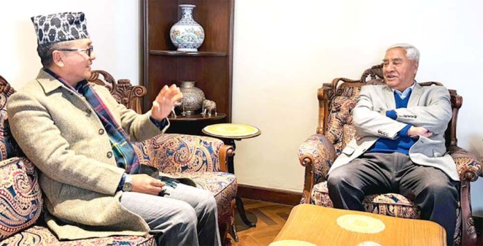 नेपाली कांग्रेसका सभापति एवं पूर्वप्रधानमन्त्री शेरबहादुर देउवासँग राष्ट्रिय प्रजातन्त्र पार्टीका अध्यक्ष एवं पूर्वउपप्रधानमन्त्री राजेन्द्र लिङ्देनले भेट गर्नुभएको छ ।