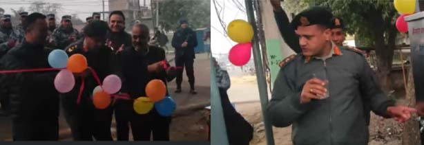 २४औं सशस्त्र प्रहरी दिवसको अवसरमा सशस्त्र प्रहरी बल, नेपालको शीघ्र प्रभाव आयोजना अन्तर्गत पर्सा जिल्लाको वीरगंज महानगरपालिका वडा नं. १६ मा सशस्त्र प्रहरी बल, नेपाल प्रस्तावित सीमा सुरक्षा गुल्मको मुख्य गेट अगाडि शुद्ध पिउने पानीको व्यवस्थाका लागि वाटर कूलर तथा शीतलताको लागि प्रतिक्षालय निर्माण गरिएको छ ।