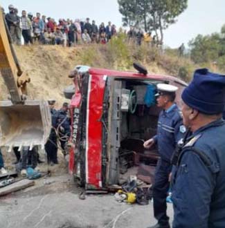 काठमाडौँको शंखरापुर नगरपालिका–५ कात्तिकेस्थित साँखु–नगरकोट सडकखण्डमा आज साँझ स्कुल बस दुर्घटना हुँदा तीन जनाको मृत्यु भएको छ । अन्य ४० घाइते भएको प्रहरीले जनाएको छ ।