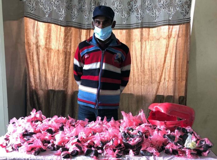 वीरगंज, २ फागुन । वीरगंज महानगरपालिका वडा नं. १६ चालिस फिटे सडकखण्डमा आज बिहान अस्थायी प्रहरी पोष्ट इनर्वाले चेकजाँच गर्ने क्रममा साढे ११ किलो चरेससहित एकजना व्यक्तिलाई पक्राउ गरेको छ ।