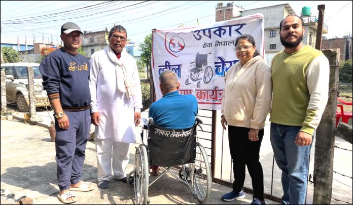 वीरगंज, १० फागुन । उपकार सेवा नेपालले जीतपुरसिमरा उप महानगरपालिका–२१ अमलेखगंज निवासी ४३ वर्षीय सुमन कार्कीलाई हवीलचेयर प्रदान गरेको छ । सामाजिक अभियन्ता प्रकाश थारूले तीन वर्ष पहिले सवारी दुर्घटनामा परी ईस्पाइनल ईन्जुरी भइ हिड्न डुल गर्न नसक्ने भयेकोले उनको असहज परिस्थितिवारे जानकारी पाएपछि उपकार सेवा नेपालले सुमन कार्कीलाई ह्वील चेयर प्रदान गरिएको थियोे । कार्यक्रममा अध्यक्ष विद्या कुमारी सरावगी, सदस्य अङ्कुर शर्मा लगायतको उपस्थिति रहेको थियो