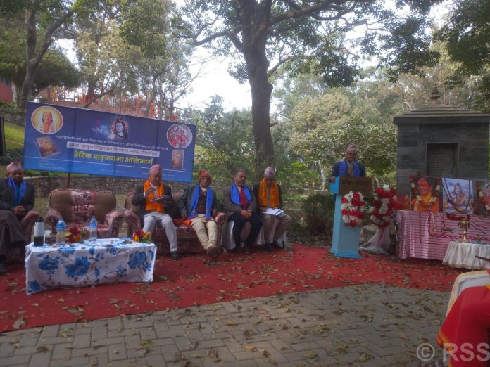 महाशिवरात्रिका अवसरमा पशुपति क्षेत्रमा आयोजित ‘वैदिक वाङ्मयमा भक्तिमार्ग’ विषयक अन्तर गुरुकूल विद्यालयस्तरीय विचार मन्थन प्रतियोगिताका विजयीलाई पुरस्कार एवं प्रमाण पत्र वितरण गर्दै उहाँले संस्कृतिको मूल संस्कृत भाषा भएको बताउनुभयो । मूललाई नाश गरेपछि त्यसको शाखाका रुपमा रहेको मौलिक संस्कृतिमाथि पनि निरन्तर आक्रमण भइरहेको उपकुलपति नेपालले सुनाउनुभयो ।